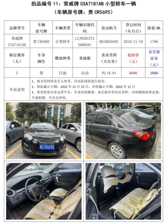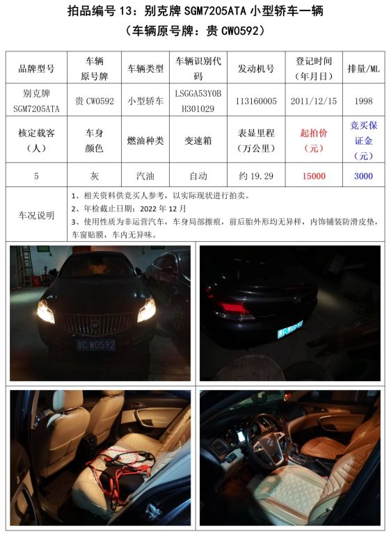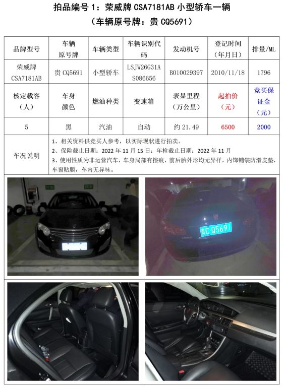 受委托,我公司定于2022年11月22日(星期二)下午14:30在中拍平臺(https://paimai.caa123.org.cn/)及貴州省遵義市匯川區廈門路13號中國農業銀行遵義分行16樓會議室采用網絡與現場同步拍賣方式公開拍賣以下標的: