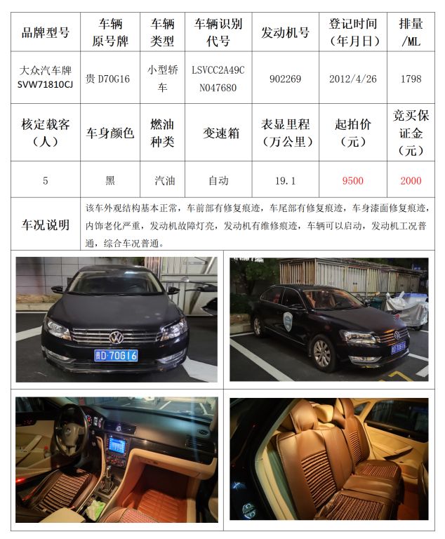 拍品編號4:大眾汽車牌SVW71810DJ小型轎車一輛