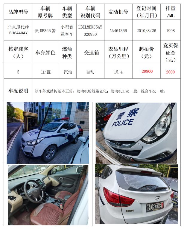 拍品編號14:北京現代牌BH6440AY小型普通客車一輛