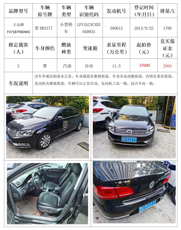 拍品編號15:大眾牌FV7187FBDWG小型轎車一輛