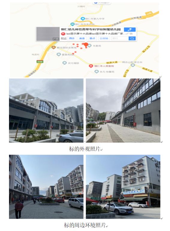 標的位于銅仁幼兒師范高等專科學校附屬幼兒園,所在樓棟均為商業樓,框架結構,用途為商業用房,目前均處于空置狀態。