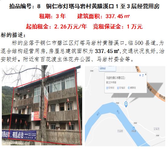 六、銅仁市碧江區(qū)燈塔馬巖村黃臘溪口1至3層經營用房3年租賃權(建筑面積:337.45㎡);