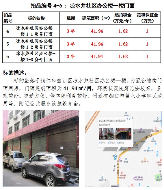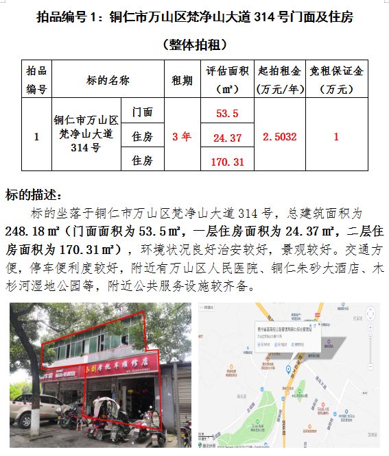 一、銅仁市萬山區(qū)梵凈山大道314號門面及住房3年租賃權(總建筑面積:248.18㎡);