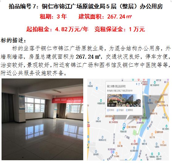 五、銅仁市錦江廣場原就業(yè)局第五層(整層)辦公用房3年租賃權(建筑面積:267.24㎡);