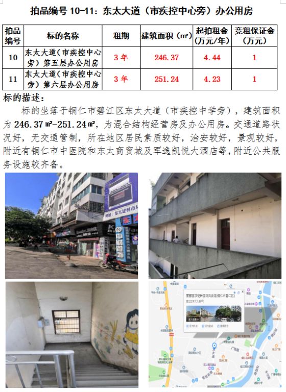 八、東太大道(市疾控中心旁)第五、六層(辦公用房)3年租賃權(建筑面積:246.37㎡-251.24㎡);