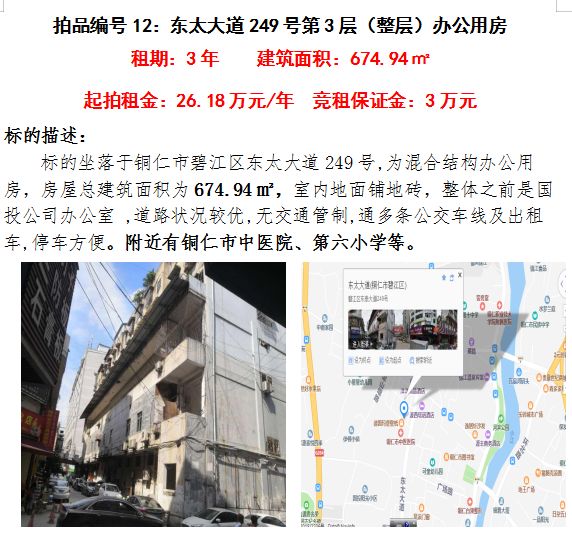 九、銅仁市碧江區(qū)東太大道249號辦公用房第三層(整層)3年租賃權(建筑面積:674.94㎡);