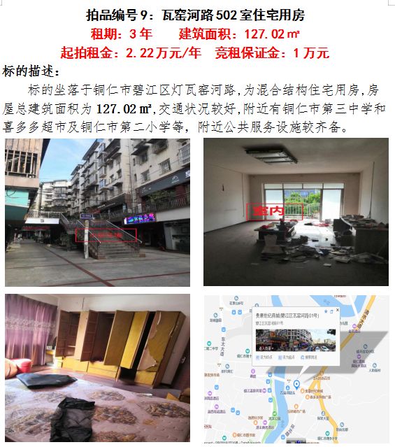 七、銅仁市碧江區(qū)瓦窯河路502室住宅用房3年租賃權(建筑面積:127.02㎡);
