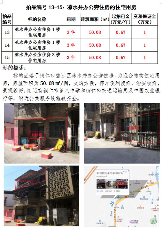 十、銅仁市碧江區(qū)涼水井辦公旁住房的住宅用房三間3年租賃權(建筑面積:50.08㎡/間)。