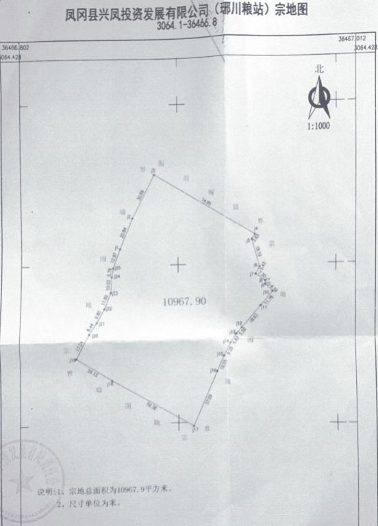 鳳岡縣琊川鎮街道上(原糧站)一宗地(土地面積:10967.9㎡,權利類型:國有建設用地使用權,權利性質:出讓,用途為:商服用地/住宅用地)。