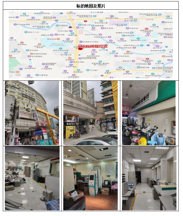 標(biāo)的位于貴陽市云巖區(qū)香獅路198、196號新里程商城1號樓F1層203號;該標(biāo)的分?jǐn)偼恋厥褂脵?quán)面積:98.51㎡ ,總建筑面積:285.72㎡,樓宇總層數(shù):9層,所在樓層:1層,地類用途:商業(yè)用地;土地使用權(quán)類型為出讓,土地使用權(quán)終止日期為:2053年10月23日,土地所有權(quán)為國家所有;建筑結(jié)構(gòu):混合結(jié)構(gòu);層高:3.3米,建筑用途為商住。