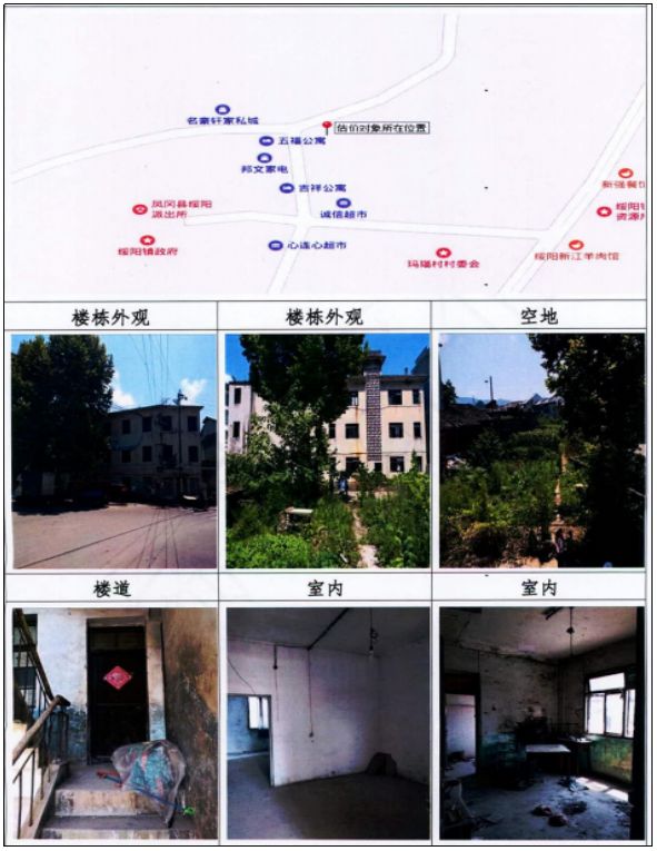 標的位于鳳岡縣綏陽鎮街上,東臨其他住宅樓棟,南臨空地,西臨政通路,總建筑面積1021.56㎡(其中:辦公340.52㎡,成套住宅681.04㎡),房屋所有權證:遵房權證鳳岡縣字第200900933號;土地使用權面積:1725.30㎡,國有土地使用證:鳳綏國用(2009)第45號,用途:商服用地,土地使用權類型:國家出資入股,權證未記載土地使用權年限。