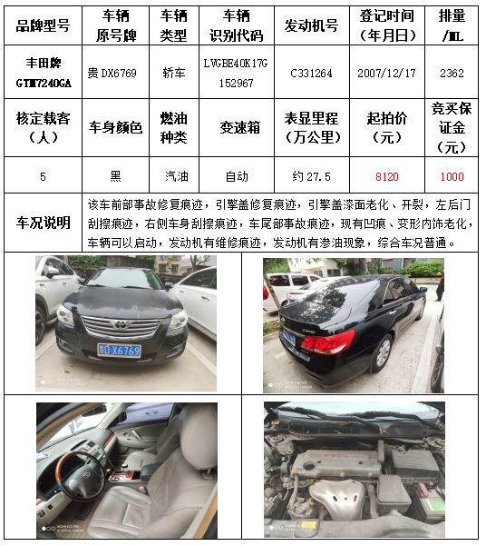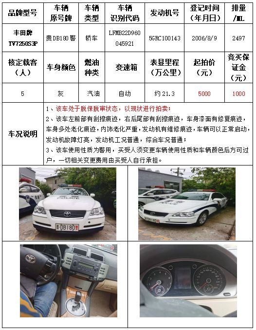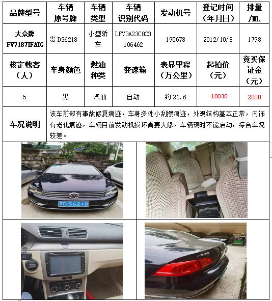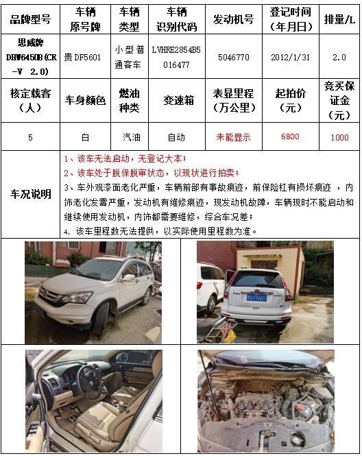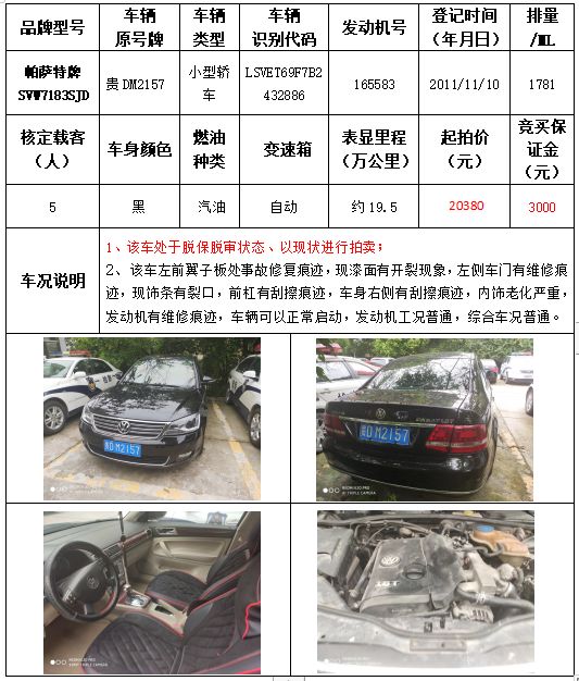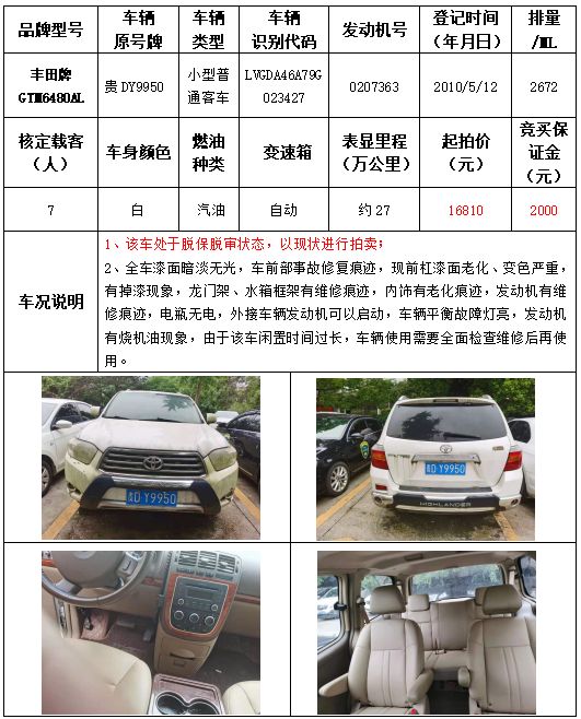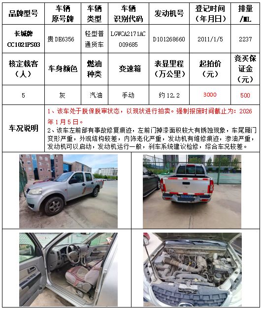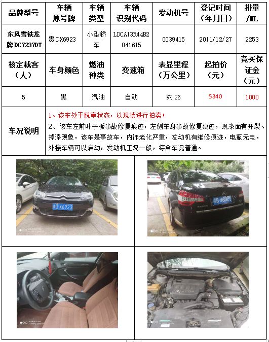 受委托,本公司定于2021年9月16日(星期四)下午14:30時,在銅仁市碧江區川硐教育園區誠信路銅仁市公共資源交易中心開標六室(拍賣大廳)公開拍賣以下車輛: