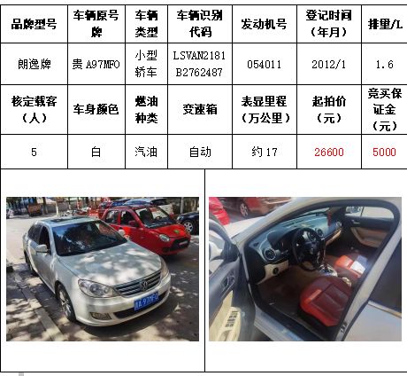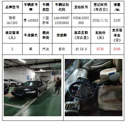 拍品編號2:別克牌SGM6527AT小型普通客車一輛