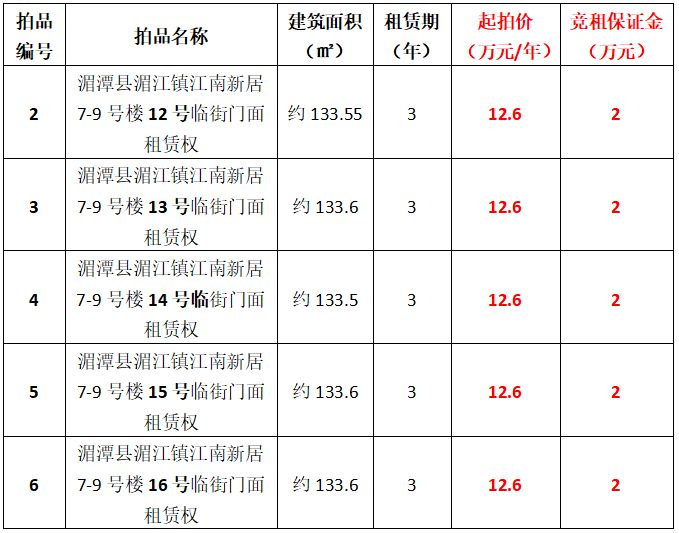 拍品2-6號 湄潭縣湄江鎮江南新居7-9號樓12-16號臨街門面租賃權