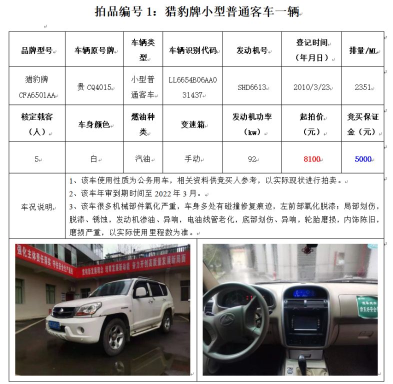 【已結束】貴州春秋車輛、罰沒物資拍賣公告