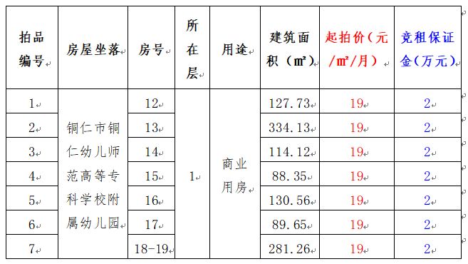 【已結(jié)束】銅仁幼兒師范高等專科學(xué)校附屬幼兒園12至19號商業(yè)用房房地產(chǎn)租賃權(quán)拍賣公告