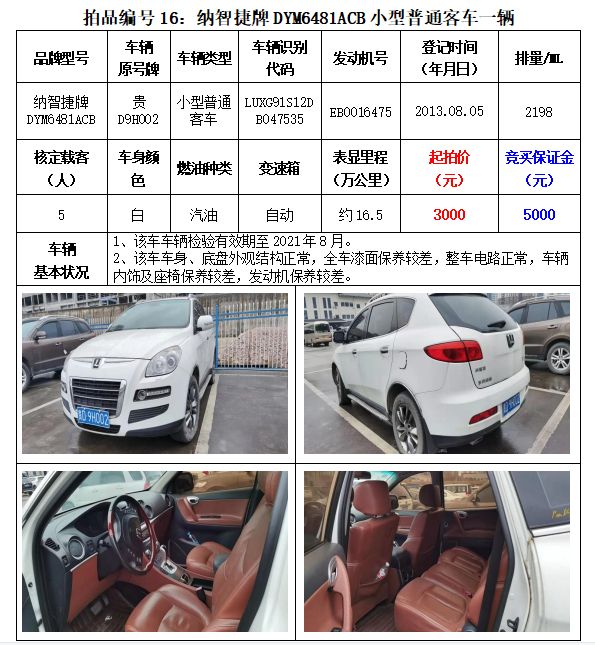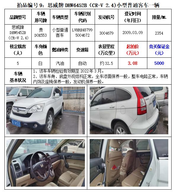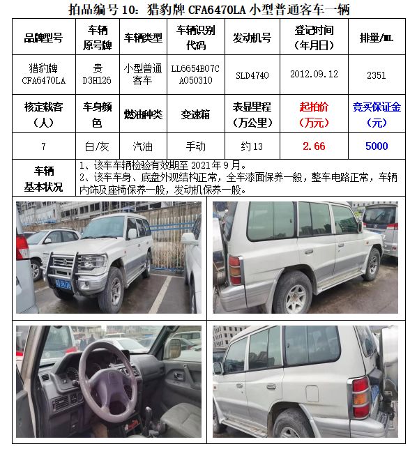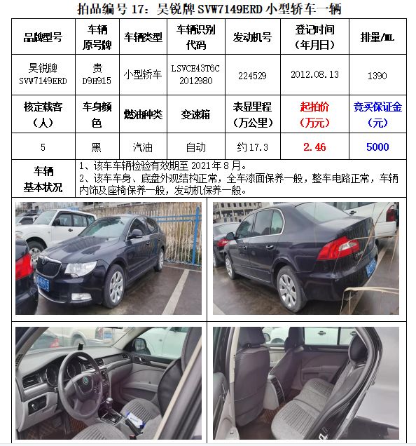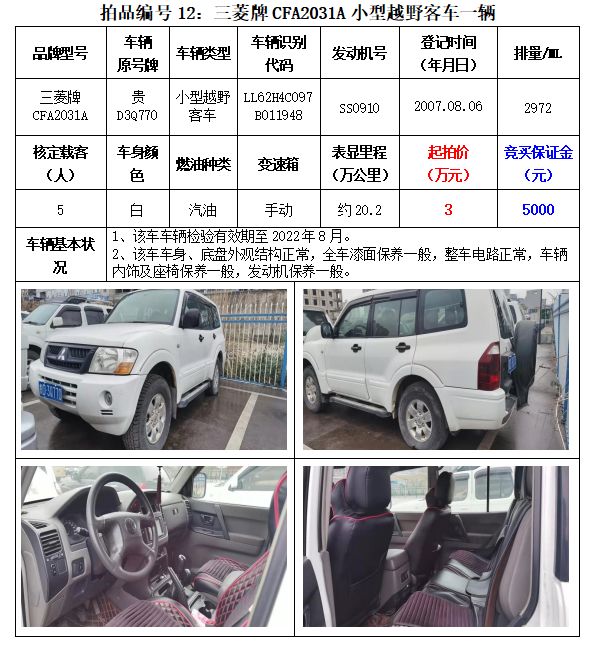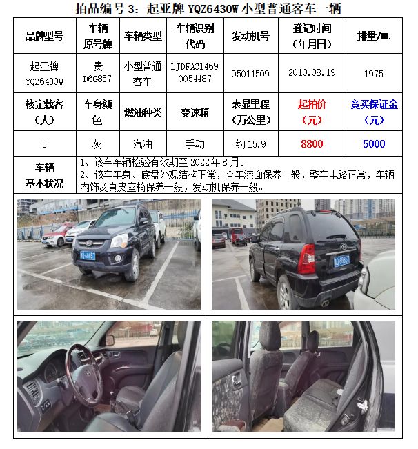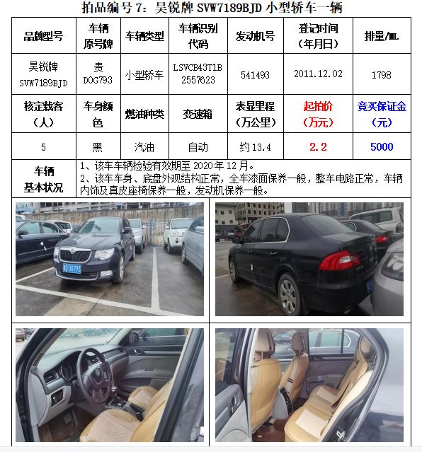 貴州春秋拍賣有限責任公司:機動車拍賣公告