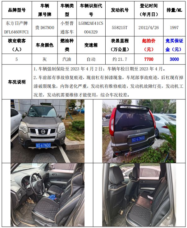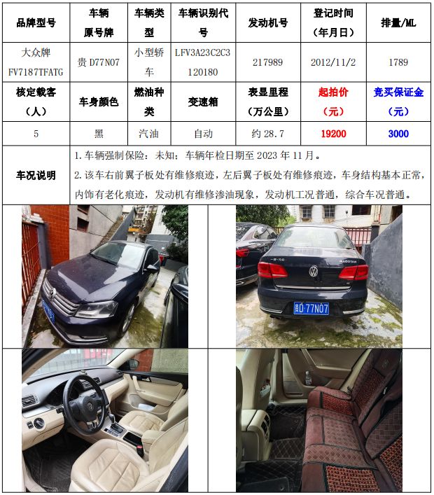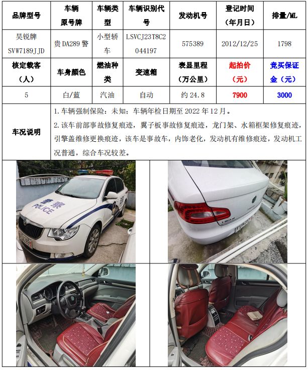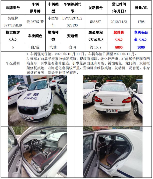 銅仁市機關事務中心車輛拍賣公告