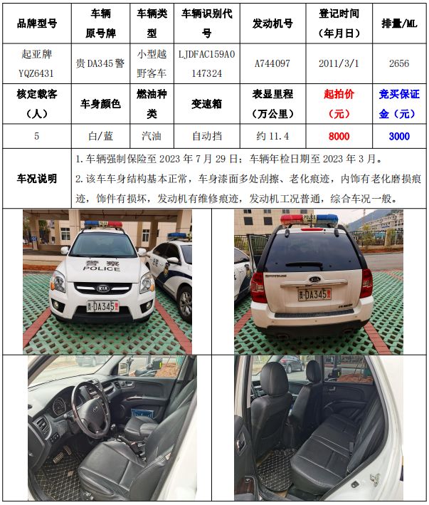 拍品編號17:起亞牌YQZ6431小型越野客車一輛