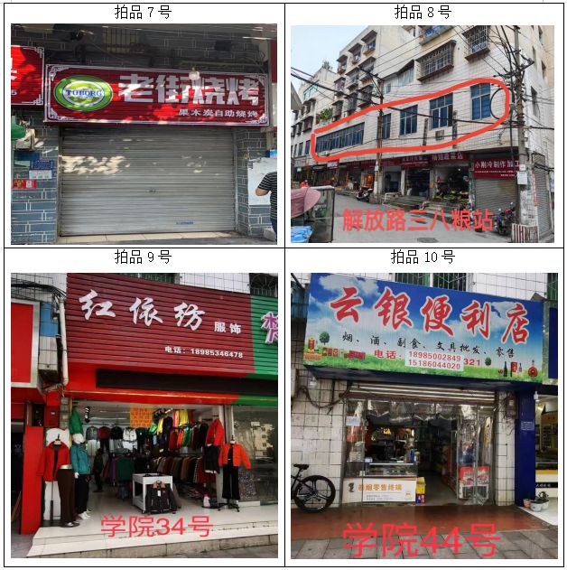 拍品9號至12號標的:位于清水大道銅仁附中對面,面積均為:27.5㎡,租賃期均為3年(2023.5.1至2026.4.30),附近有車站、醫院、銀行、酒店、超市、學校等,交通便利,人流量大。