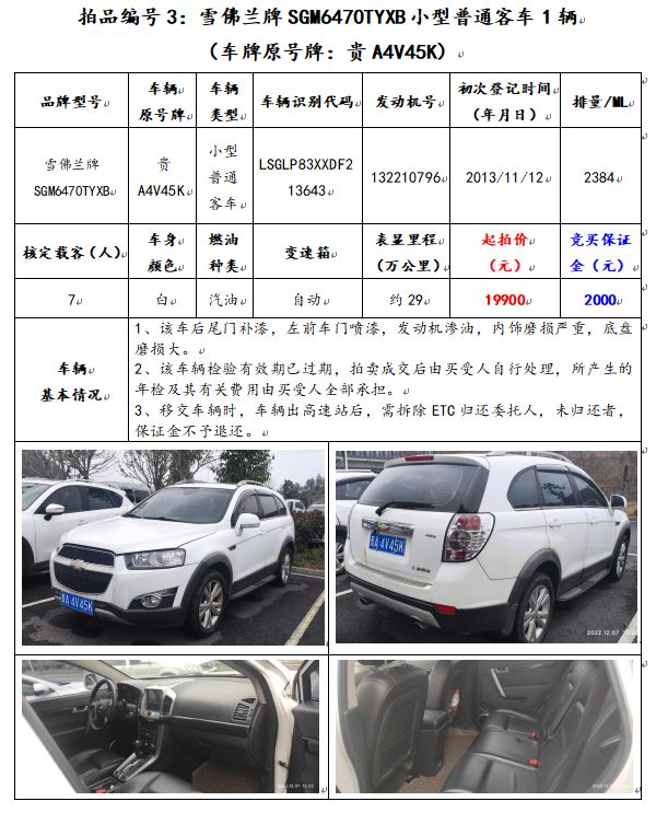 3、雪佛蘭牌SGM6470TYXB小型普通客車1輛(車牌原號牌:貴A4V45K)。