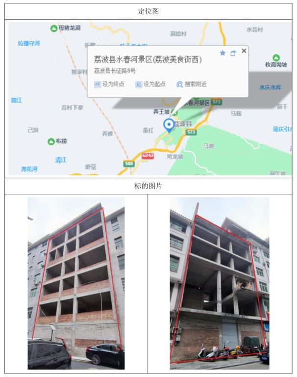 標的位于玉屏鎮(zhèn)民族路2號,房屋建筑面積:907.75㎡,產(chǎn)權完整,2011年建成,房屋總層數(shù)為14層,標的所在層數(shù)為1層。不動產(chǎn)權證號:黔房權證荔波縣字第201300496號,土地所有權類型:出讓;土地所有權規(guī)劃用途:商業(yè)用房,建筑結構為鋼混結構。
