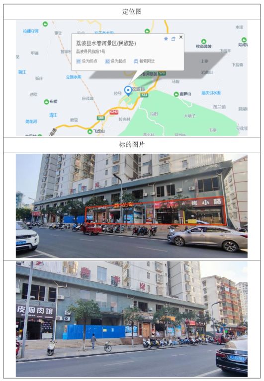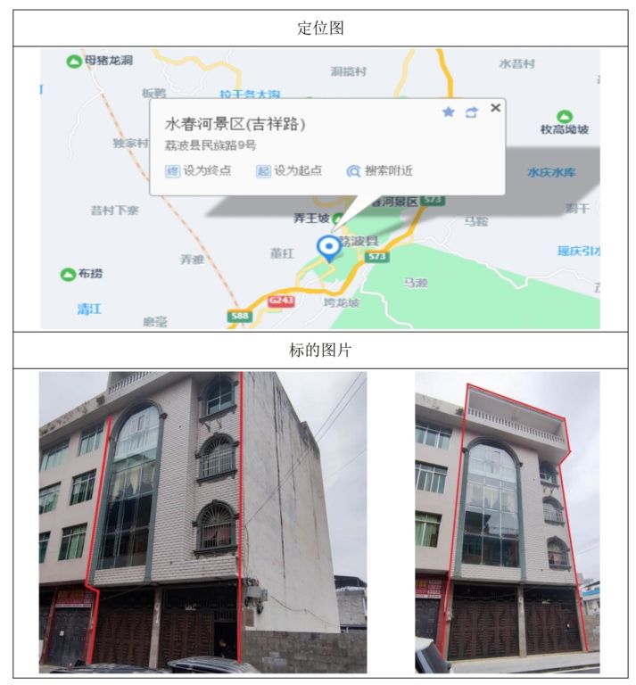 標的位于玉屏鎮(zhèn)民族路2號,房屋建筑面積:627.65㎡,產(chǎn)權完整,2011年建成,房屋總層數(shù)為14層,標的所在層數(shù)為1層。不動產(chǎn)權證號:黔房權證荔波縣字第201300495號,土地所有權類型:出讓;土地所有權規(guī)劃用途:商業(yè)用房,建筑結構為鋼混結構。
