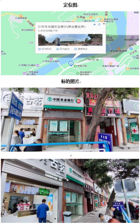 1、標的坐落于仁懷市茅臺鎮河濱社區,房屋地上共7層,標的所在層數位于第1層,建筑面積:34.65㎡,建筑結構:混合結構,設計用途為商業,分攤土地使用權面積:4.98㎡,地類(用途):辦公用地,使用權類型:國家作價出資入股;