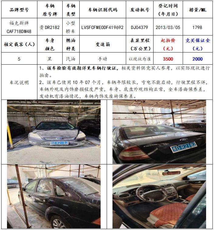 拍品編號3:福克斯牌CAF718DM48小型轎車一輛(車輛原號牌:貴DR2182);