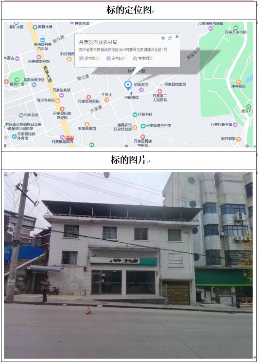 標的位于貴州省丹寨縣龍泉鎮建設北路,磚混結構,所在樓棟總層數為3層,標的物處于第1-3層。