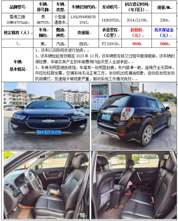 拍品編號2:雪佛蘭牌SGM6470TAAD小型普通客車1輛