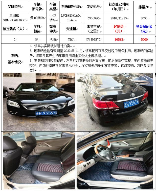 【已已結束】機動車、丹寨農行原龍泉營業所拍賣公告