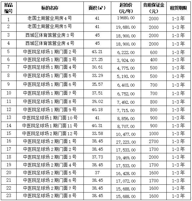 【已結(jié)束】遵義市習(xí)水縣老國土局營業(yè)用房,西城區(qū)體育館門面和中醫(yī)院對面足球場部分門面等經(jīng)營性資產(chǎn)拍租公告