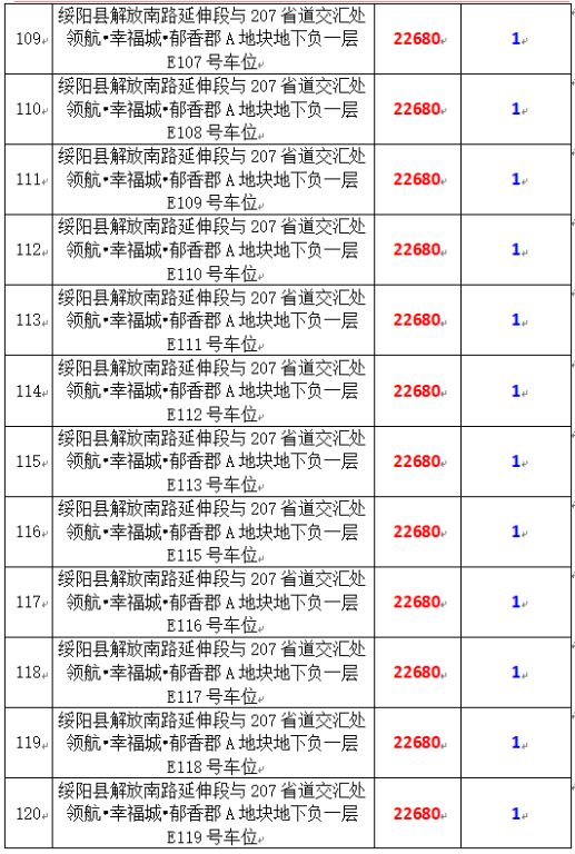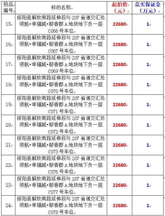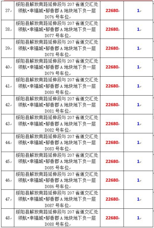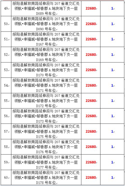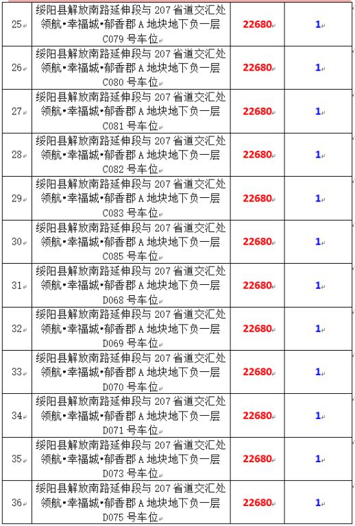 5、綏陽縣解放南路延伸段與207省道交匯處領航?幸福城?郁香郡A地塊地下負一層170個車位,起拍價:22680元/個,競買保證金:1萬元/個。