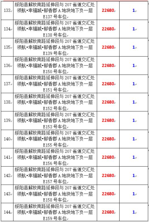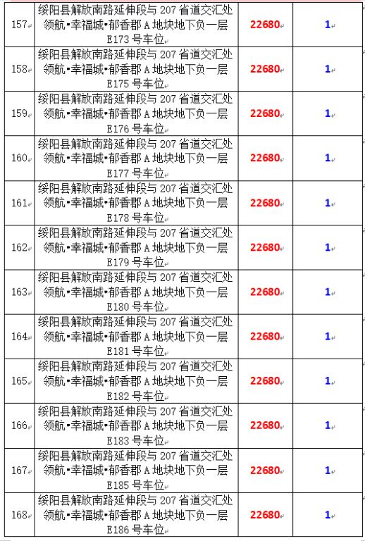 1、標的坐落于綏陽縣解放南路延伸段與207省道交匯處領航?幸福城?郁香郡A地塊地下負一層。標的總數為170個車位,水電設施齊全。