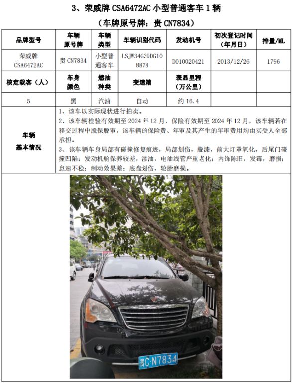 拍品編號2:梅賽德斯-奔馳牌FA6521小型普通客車1輛、榮威牌CSA6472AC小型普通客車3輛、雪佛蘭牌SGM6470TAAD小型普通客車1輛,共計5輛,整體拍賣