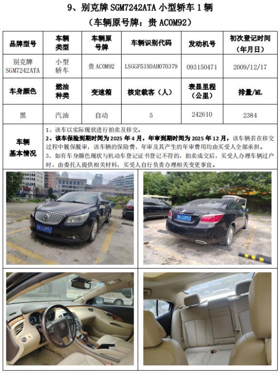 受委托,我公司定于2024年11月8日(星期五)下午14:30時(shí),在貴州省公共資源交易中心開標(biāo)室11室(貴陽市南明區(qū)遵義路)公開拍賣以下標(biāo)的: