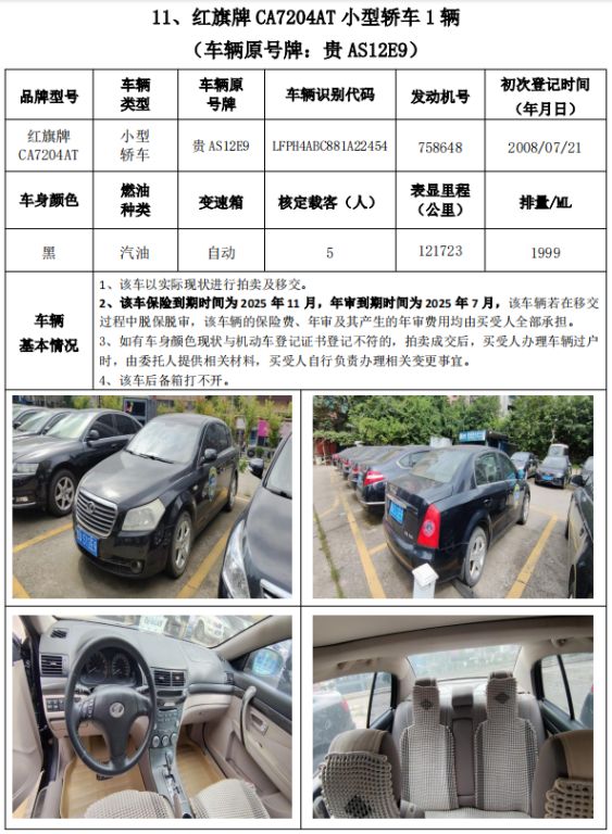 拍品編號(hào)1:奧迪牌、帕薩特牌、金龍牌、柯斯達(dá)牌、陸地巡洋艦、別克牌、帕薩特牌、紅旗牌機(jī)動(dòng)車輛共計(jì)13輛,整體拍賣
