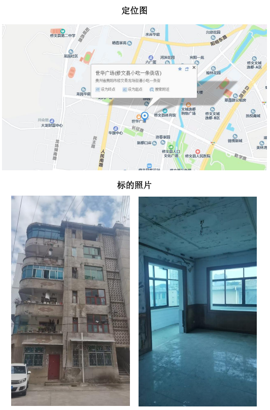 拍品編號7:貴陽市修文縣龍場鎮迎春壩(建行宿舍)A幢6層12號住宅用房